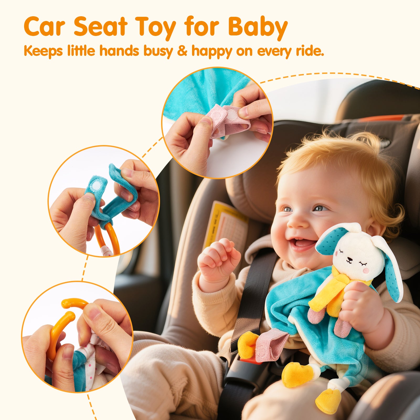 - 【Easy for Home & Travel】Perfectly sized for tiny hands to hold and cuddle. The take-along sensory toys easily clip onto strollers, car seats, or diaper bags, making it a versatile travel toy for infants. Lightweight, machine washable, and quick to dry—ideal for daily use at home or outdoors.