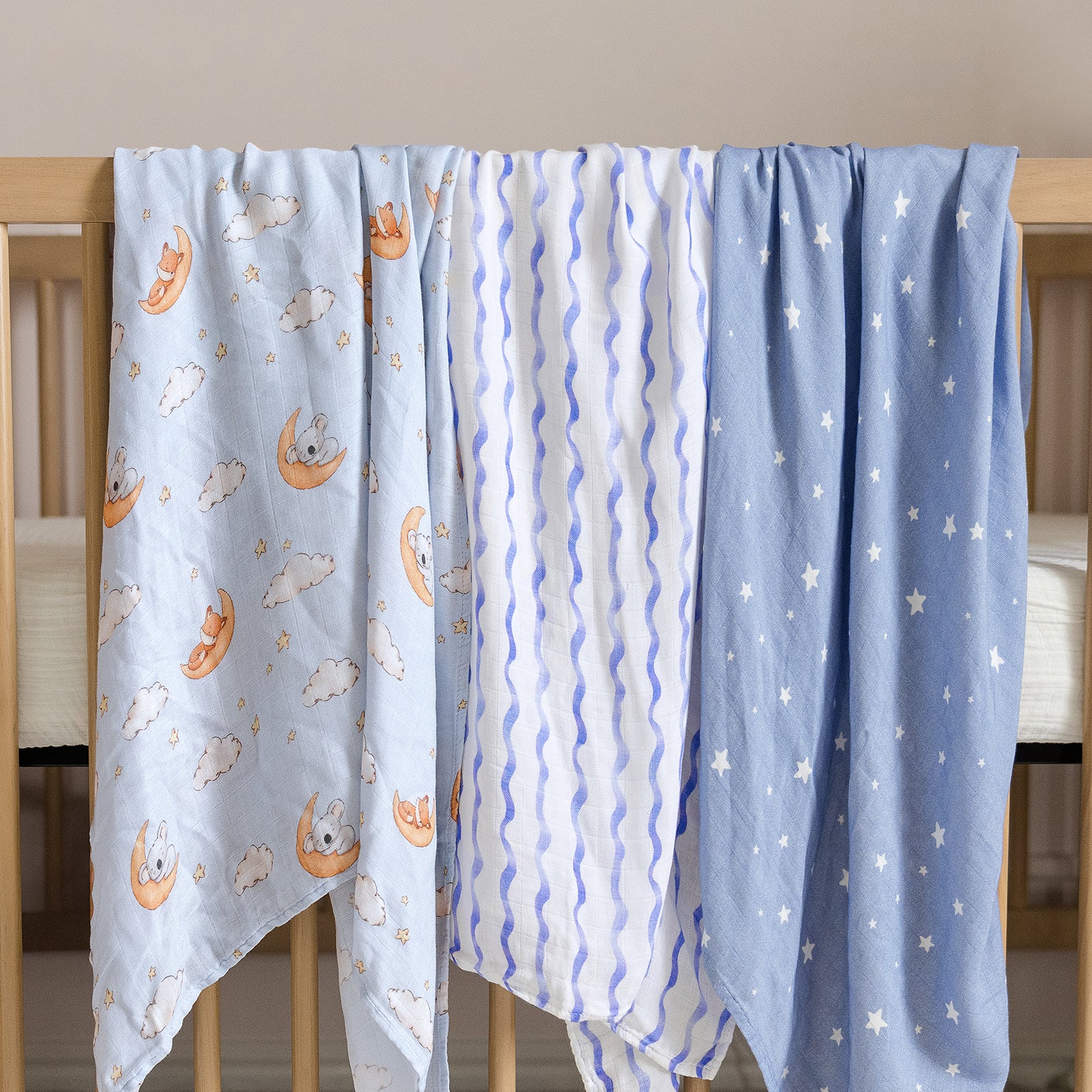 - Silky Soft & Breathable: Made from 100% bamboo viscose in a lightweight muslin weave, this swaddle keeps baby cool, comfortable, and cozy even in warm weather. Bamboo is naturally silky-soft, breathable, and moisture-wicking, and and gentle on sensitive skin, while muslin allows airflow and dries quickly. Perfect for summer swaddling