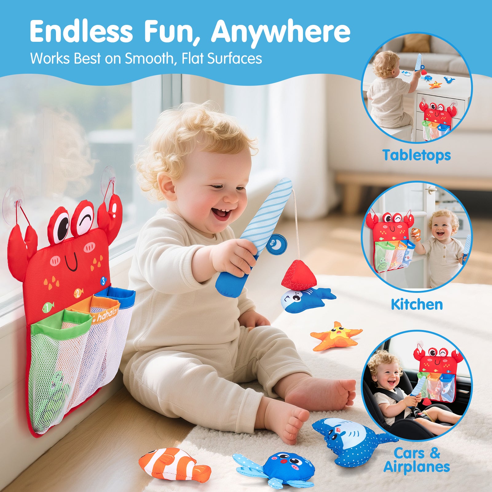 • Perfect for Play Anywhere: Equipped with strong suction cups, this fishing toy can be played with on smooth surfaces like bathtub, window, or even in the car. It’s ideal for both bathroom and travel, keeping toddlers entertained and engaged wherever they go