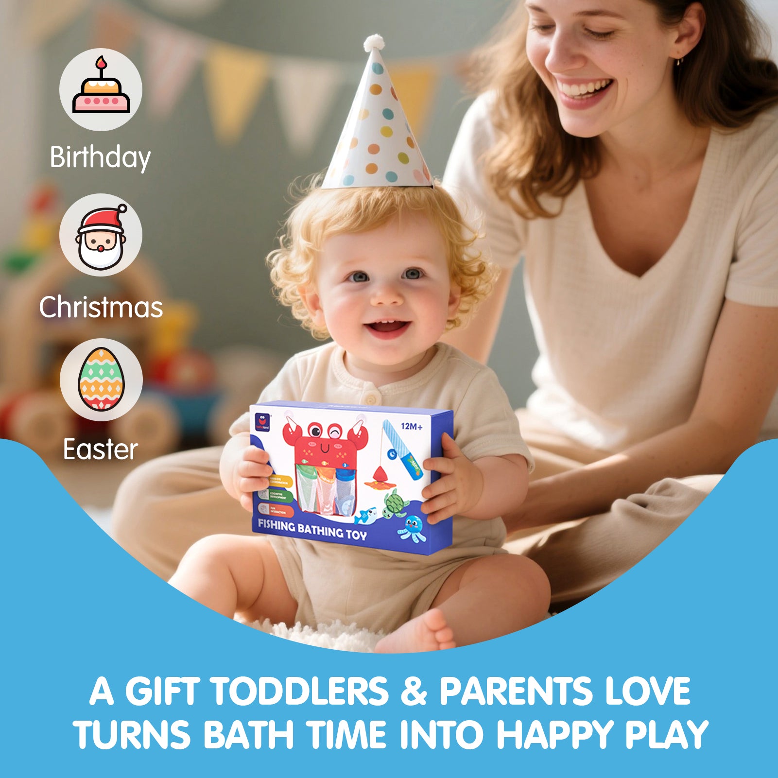 • Toddler's First Bath Fishing Toy: The perfect gift for toddlers aged 1-3, it is inspired by montessori principles, encouraging hands-on, interactive play, helps toddlers learn colors and counting while boosting cognitive skills. The floating fish are easy to catch, promoting hand-eye coordination and fine motor development, making bath time both fun and educational