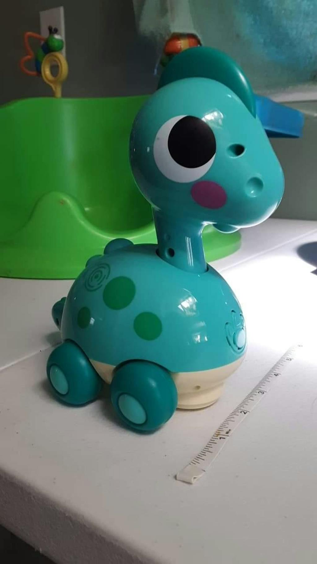 Il giocattolo è caratterizzato da un design touch and go, musica dolce, ruggito realistico dei dinosauri, luci soffuse, testa che annuisce, design carino e affascinante, che incoraggerà i tuoi piccoli a gattonare e promuoverà le capacità motorie del bambino, le capacità motorie, visive e uditive sviluppo, coordinazione occhio-mano mentre giocano.